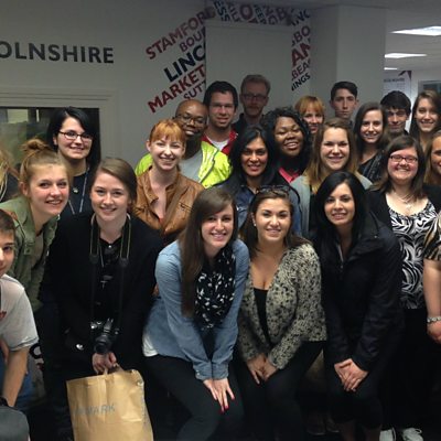 As part of their study trip to Harlaxton Manor near Grantham, media students came to see us at 大象传媒 Radio Lincolnshire.